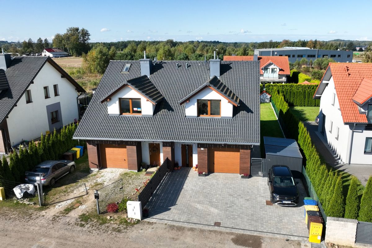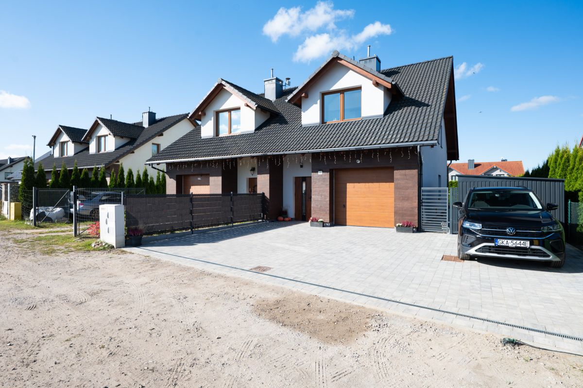 Na sprzedaż klasyczny i elegancki dom w zabudowie bliźniaczej, zaprojektowany w nowoczesnej stylistyce, łączącej funkcjonalność z ponadczasowym stylem. Nieruchomość idealna dla rodziny ceniącej komfort, przestrzeń oraz spokojne otoczenie, przy jednoczesnym szybkim dostępie do infrastruktury miejskiej.