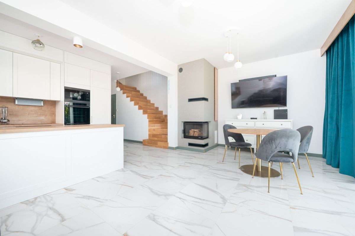 Na sprzedaż klasyczny i elegancki dom w zabudowie bliźniaczej, zaprojektowany w nowoczesnej stylistyce, łączącej funkcjonalność z ponadczasowym stylem. Nieruchomość zlokalizowana jest w Dąbrowie koło Banina - dynamicznie rozwijającej się miejscowości, doskonale skomunikowanej z Trójmiastem. Idealna dla rodziny ceniącej komfort, przestrzeń oraz spokojne otoczenie, przy jednoczesnym szybkim dostępie do infrastruktury miejskiej.